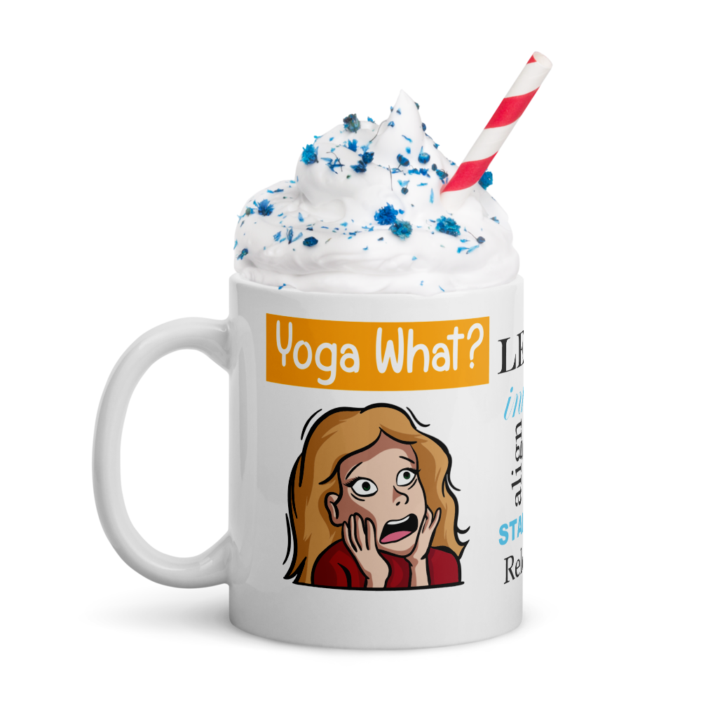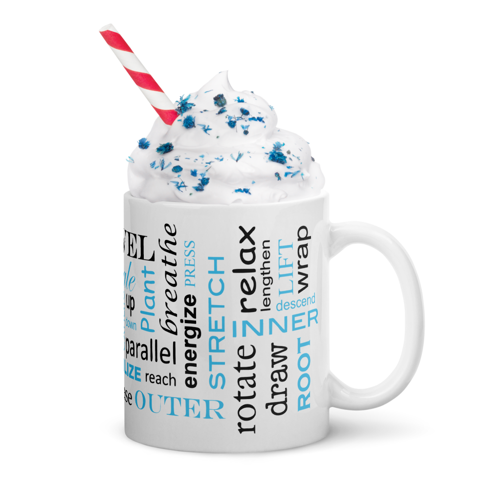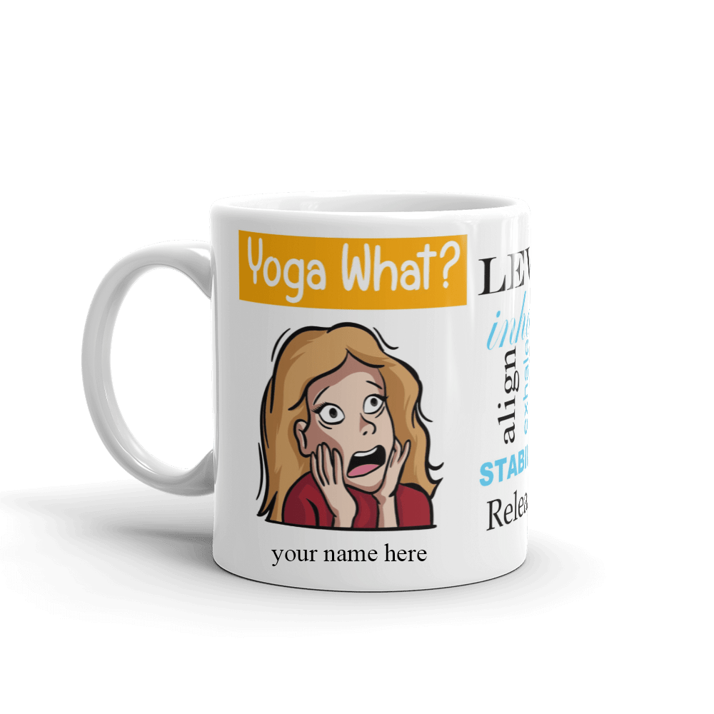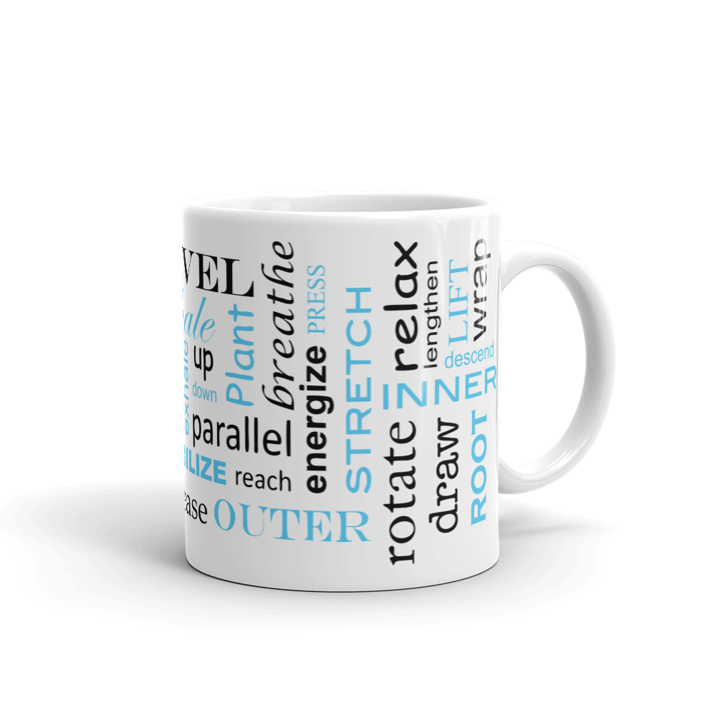 Whether you’re drinking your morning coffee, evening tea, or something in between–this mug’s for you! It’s sturdy and glossy with a vivid print. Put a smile in your yoga!
